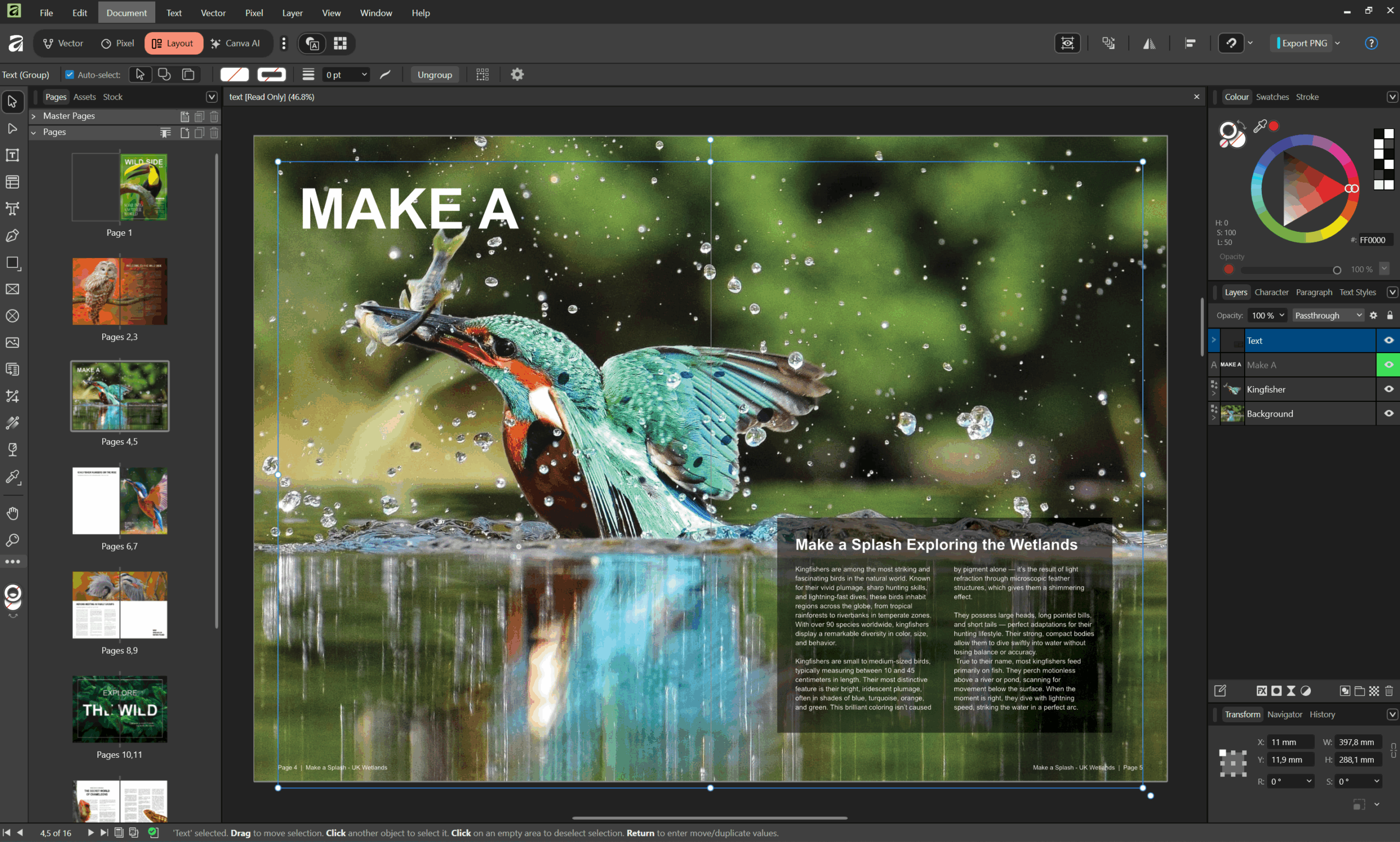 Met Affinity kun je bijna alles wat je nodig hebt om creatief los te gaan. Het is één programma waarin je drie soorten werk kunt doen: vector, pixel en lay-out. Vector is perfect voor strakke logo’s, illustraties en iconen. Pixel gebruik je voor fotobewerking en gave effecten. En met lay-out kun je posters, flyers of zelfs een magazine maken. Alles zit in één tool, dus je hoeft niet steeds te wisselen.